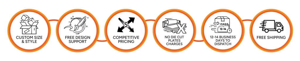 Enjoy exclusive value on all custom box orders, big or small. Free design assistance, no die or plate charges, no hidden charges, and free shipping.