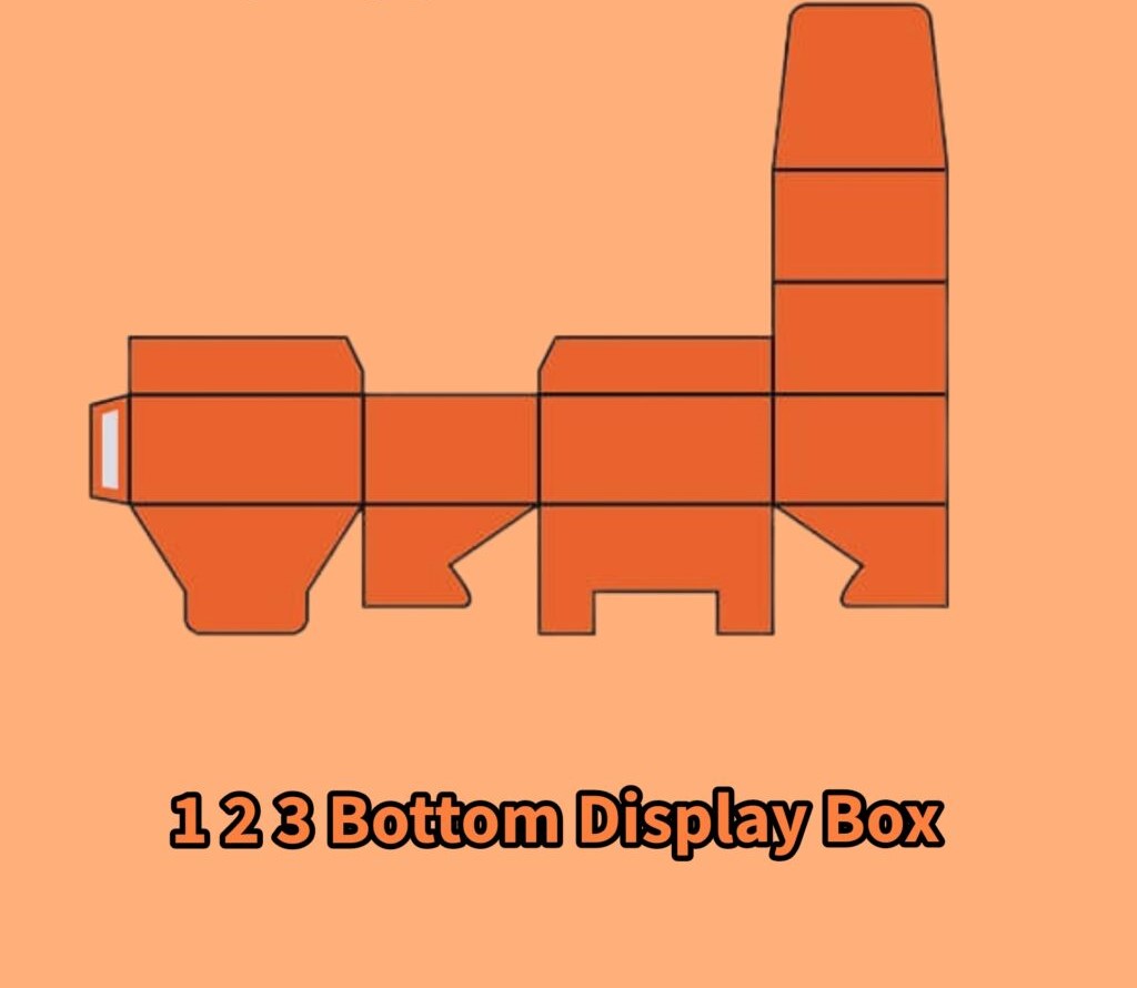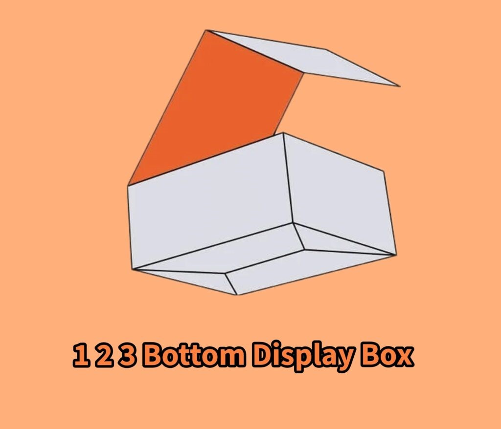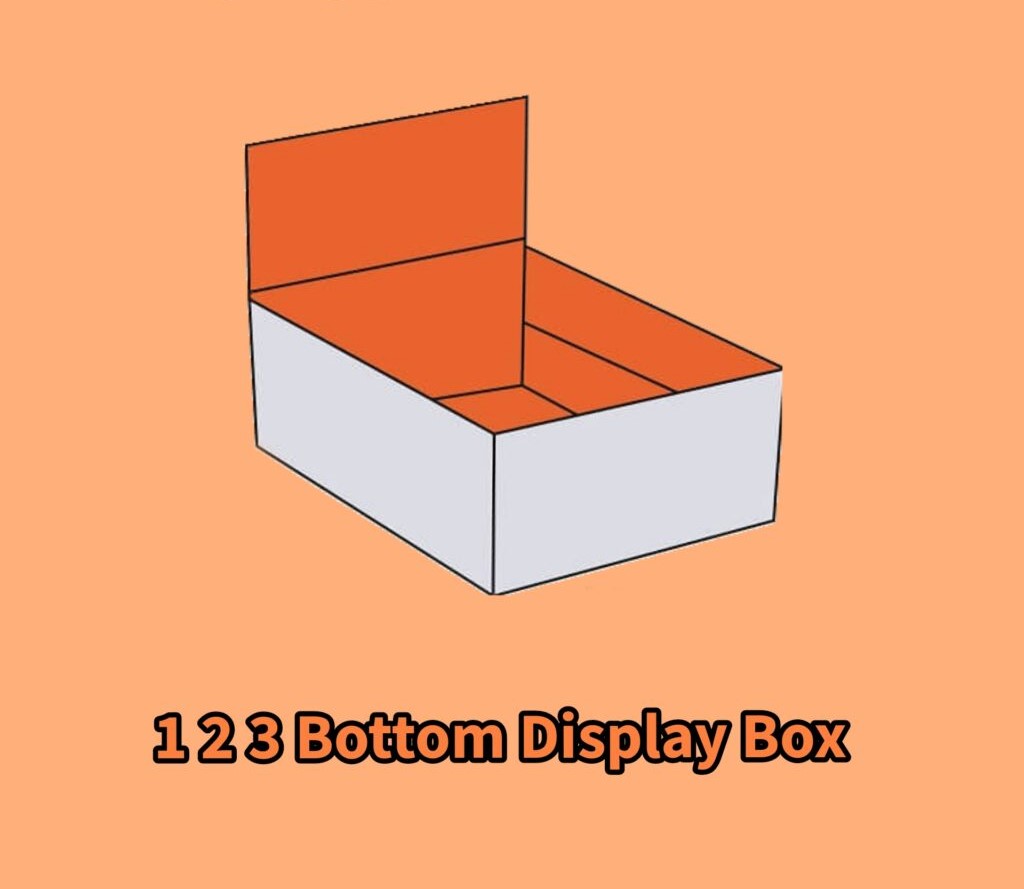 The Custom 1-2-3 Bottom Display box is easy to assemble and great for displaying small to medium-sized products on counters and shelves in retail stores and supermarkets. They are customizable in terms of materials, shapes, sizes, colors, printed designs, and surface finish options. These boxes are offered at the lowest wholesale prices with free shipping, free cutting, and free printing equipment on large bulk orders.