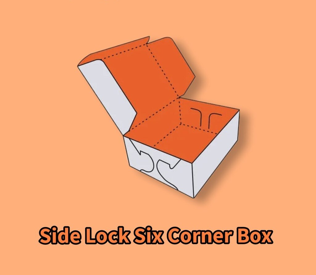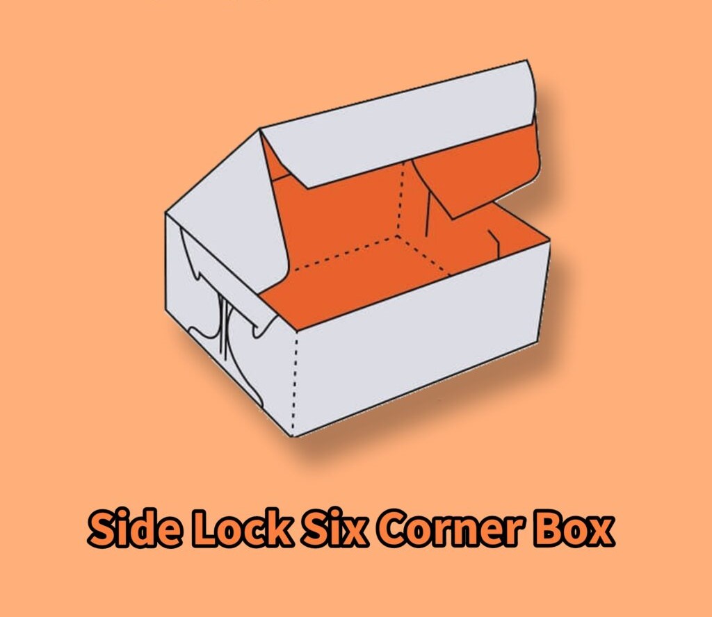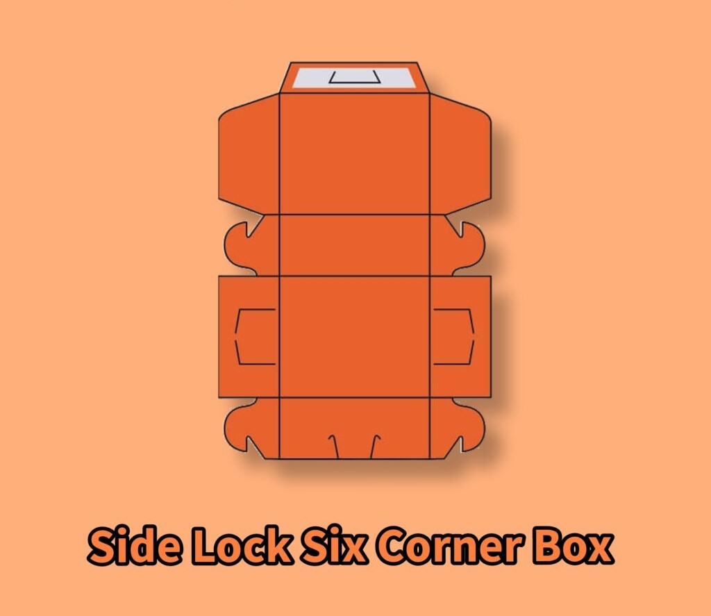 The Side Lock Six Corner Box is one of the more secure and safe packaging solutions for many products. These boxes have four regular sides. When finished, you can alter measurements to form rectangles or squares out of them, but they get their six-corner name from the locking mechanism that creates six locking cuts on the two larger sides.